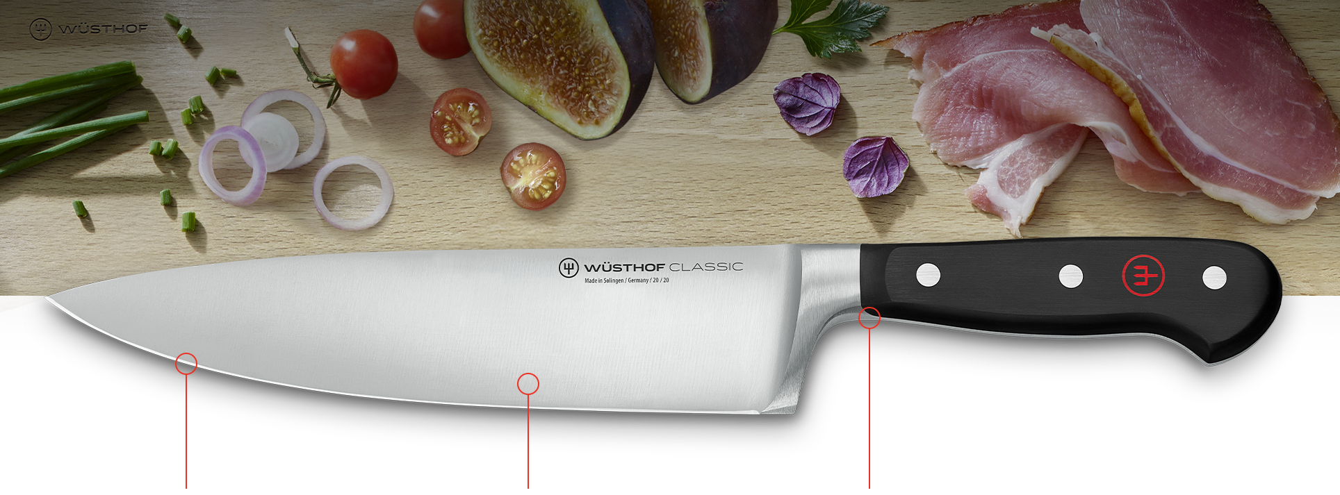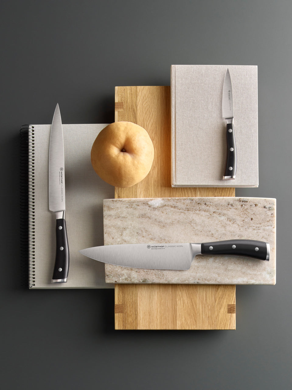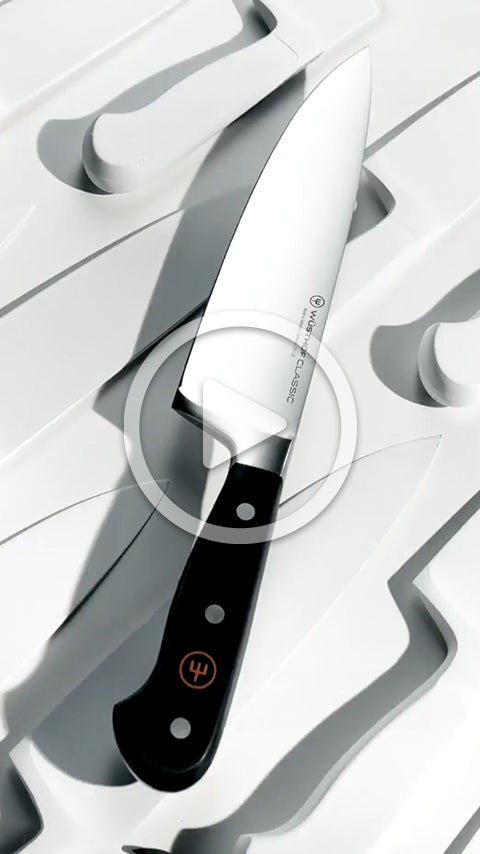 Our forged knives go through over 54 steps, manufactured from a single piece of special WÜSTHOF knife steel from Germany. Heated to around 1,250°C, the red-hot steel is then compressed and shaped in the drop forge, forming the perfect basis for the longevity of our knives. With good care, they will last a lifetime. At WÜSTHOF we combine people and technology to create unique quality. We still rely on the experience of our experts, as no tool is more sensitive and discerning than the human hand and eye, especially in combination with modern production technology.
