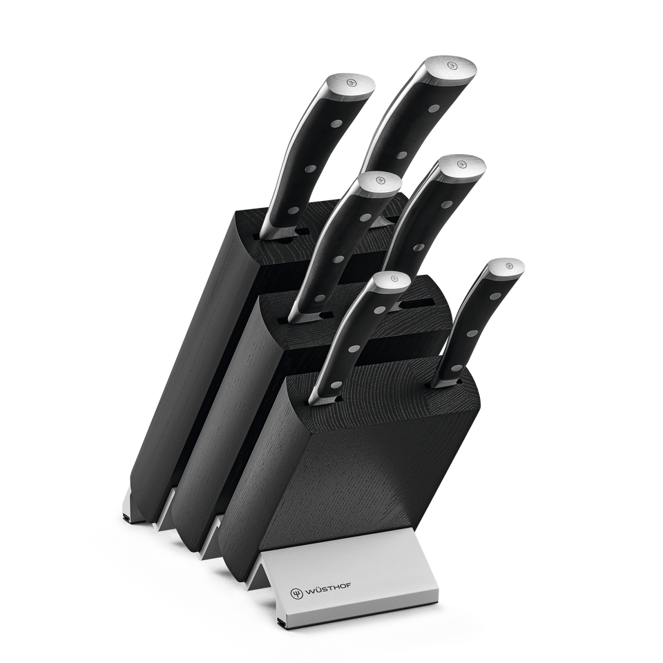 WÜSTHOF knives can be honed and sharpened using a hand-held sharpener, an electric sharpener, a sharpening or honing steel, or a whetstone. We recommend using the same brand sharpener as your knife collection, to ensure that the material used is the correct hardness for the steel on your knives. Our sharpening angle for standard blades is 14˚ per side, and for Asian-style blades (Santokus, Nakiris) is 10˚ per side. We offer a variety of sharpening products with pre-set angles. Learn how to use our different sharpening tools here.