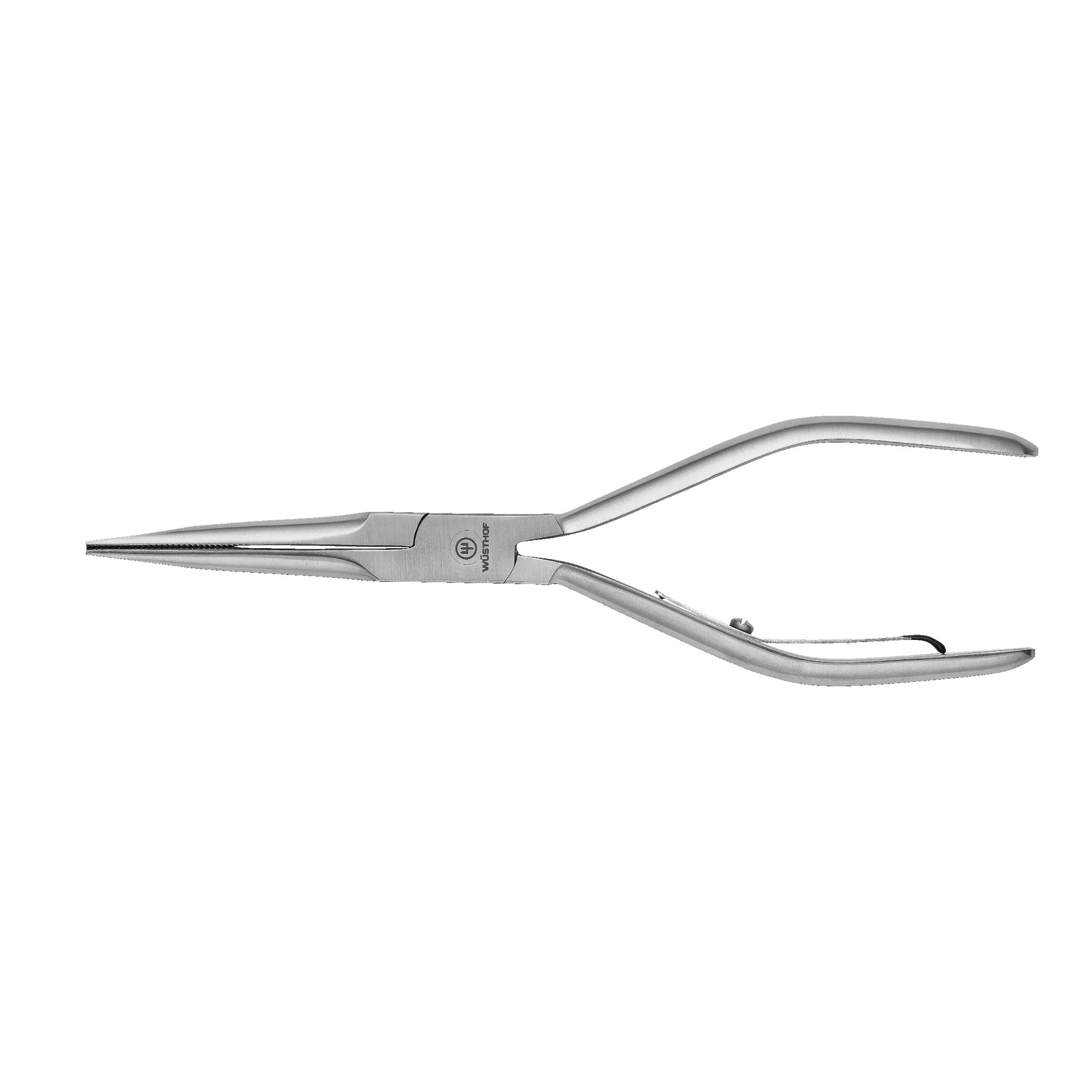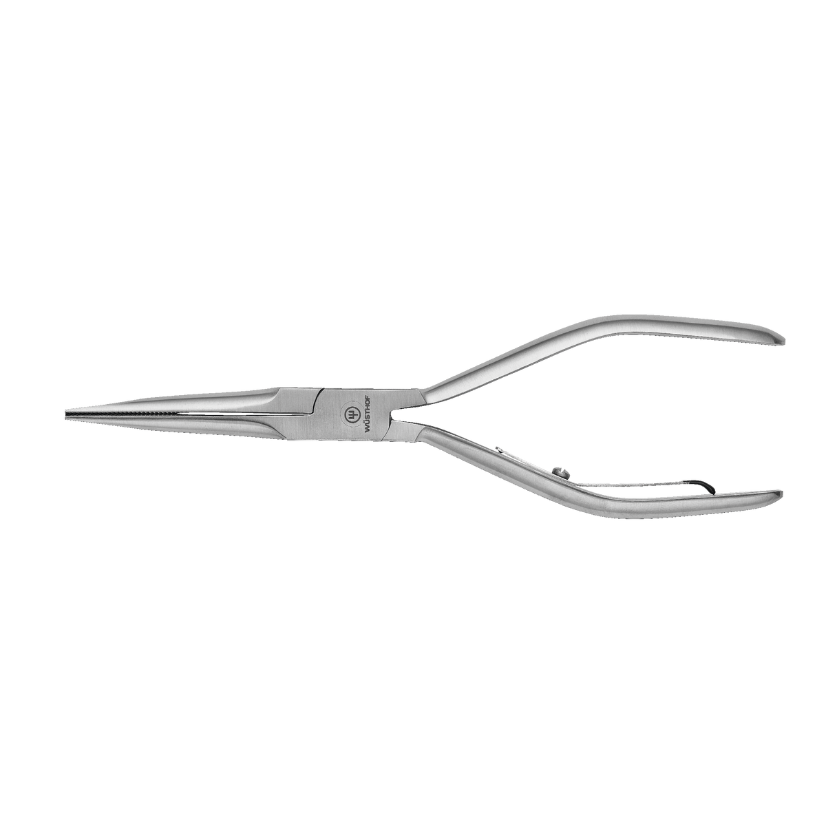 The WÜSTHOF Fishbone Pliers feature an inner spring that allows for better handling of delicate fishbones, preventing them breaking off during removal. A serrated surface holds onto thin and frail bones as they are extracted, while the high-carbon stainless steel construction ensures that these pliers will be in use for years to come.