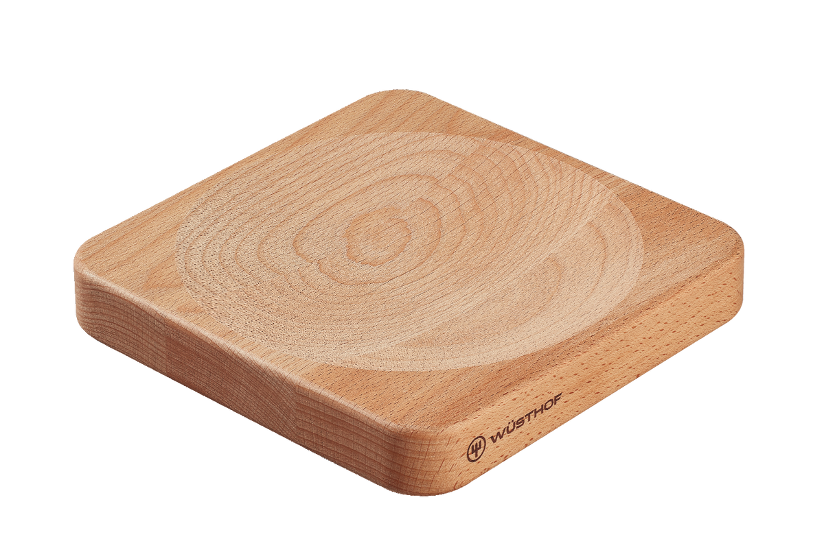 The WÜSTHOF Mincing Board is ergonomically designed for the use of weighing knives for chopping herbs.