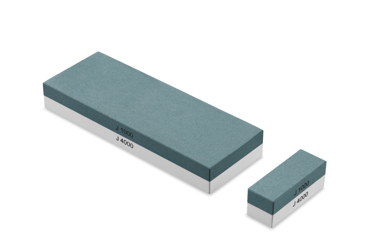 The WÜSTHOF Whetstone J 1000/4000 consist of a combination of different high-quality, abrasive grits. The stone has two sides – one with a fine grit and one coarse. The coarse side is used to smooth off any unevenness while the finer grit is used to hone and sharpen your knife. Includes a non-slip holder for stability while sharpening.